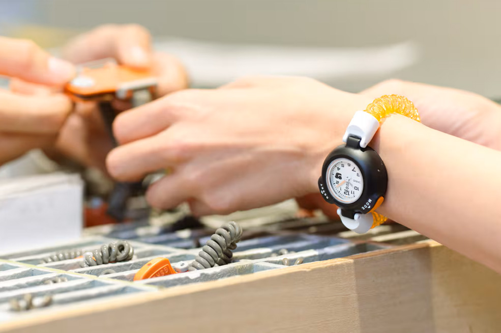 「一般的なアナログ時計はリューズで時刻調整をしますが、サ時計ではボタン操作で調整する仕様にしています。限られた構成の中で“本当に必要な機能だけを、わかりやすく届ける”ことを学んだ開発だったと思います」(百貫さん)