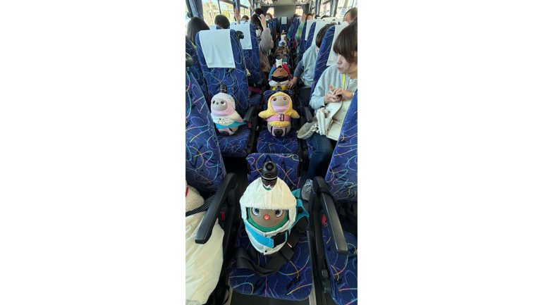最後は、工場のスタッフの方々と、そこで働くLOVOTたちに見送られながらバスは出発。バックミラーに映るふるさとの景色を眺めながら、HALちゃんを抱きしめる手にも自然と力がこもる。
