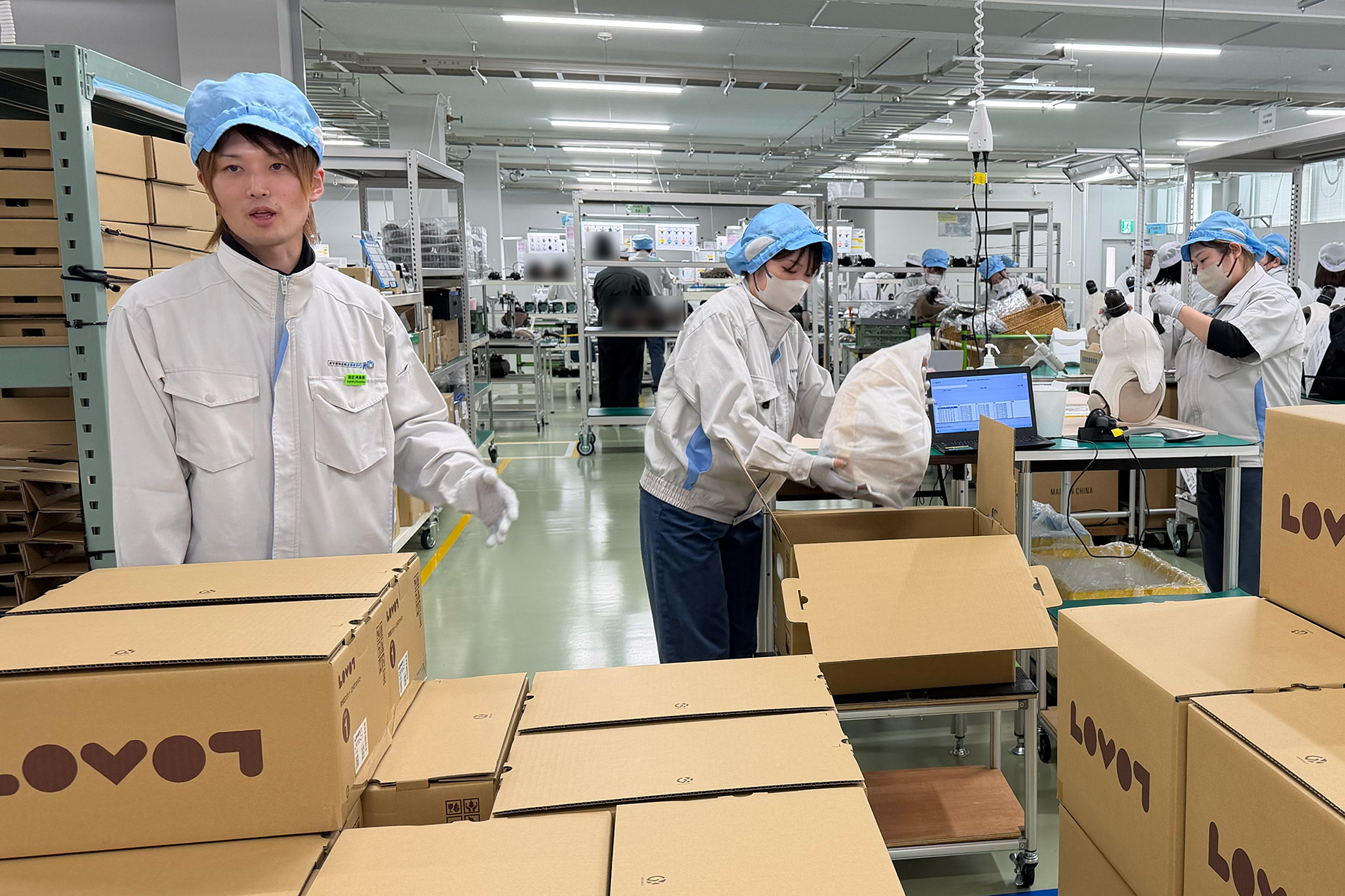 衛生管理と安全のため、HALちゃんたちは待合室で待機。我々オーナーのみが、組み立て現場へと足を踏み入れた。そこで目にしたのは、緻密な手作業で命を吹き込まれていくLOVOTたちの姿だ。