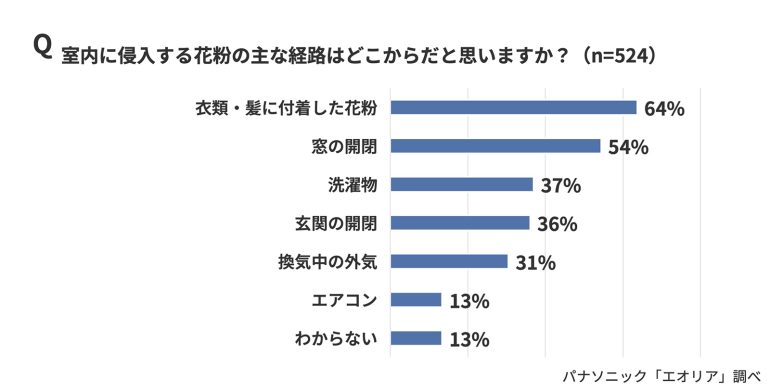 花粉の侵入経路では13%がエアコンと回答