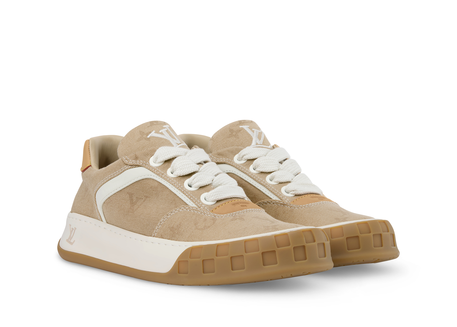シュータンとアウトソールを彩る傾斜したLV イニシャル シグネチャーにちなんで名付けられた1足で、アウトソールの前面に配したダミエ・パターンが特徴。