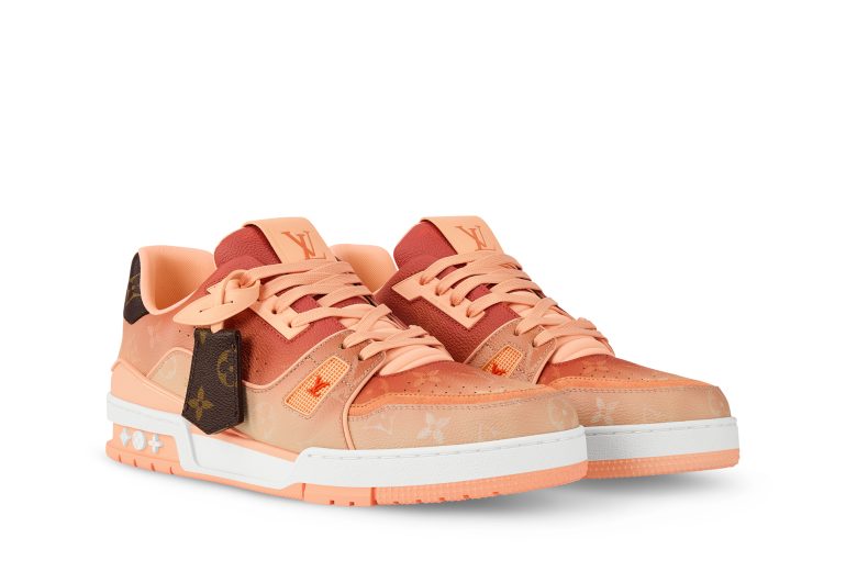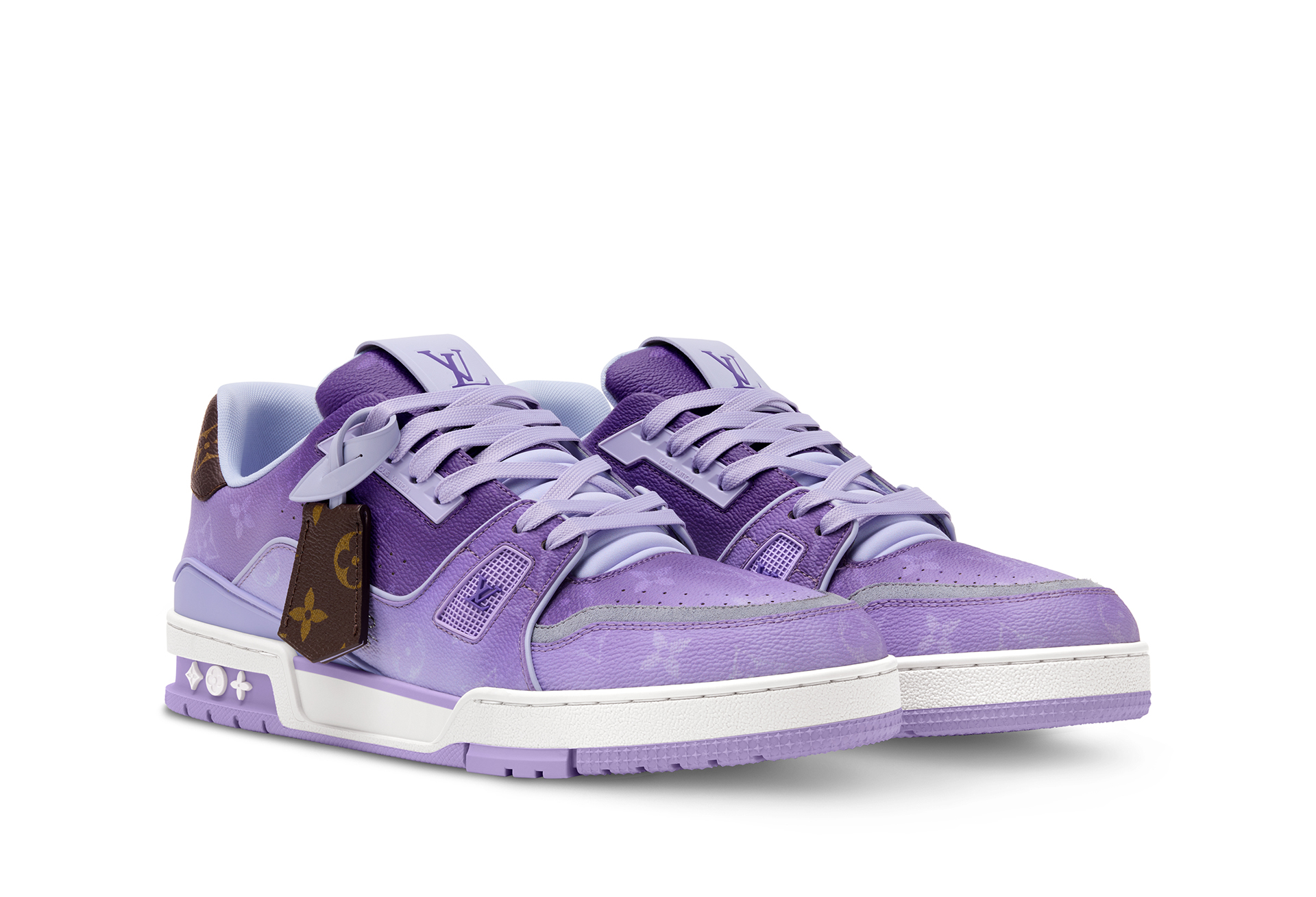 モノグラム・パターンをプリントしたキャンバスを使用し、今シーズンらしくアップデートされた「LV トレイナー スニーカー」。2026春夏メンズ·ファッションショーのカラフルなレザーグッズと美しく調和する1足だ。