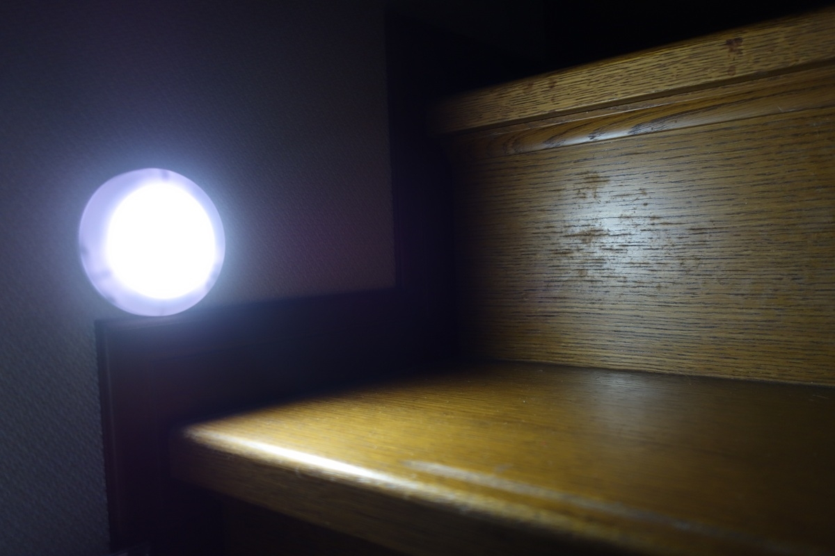 停電時の暗闇の中での安全な動線確保にはセンサーフットライトが有効