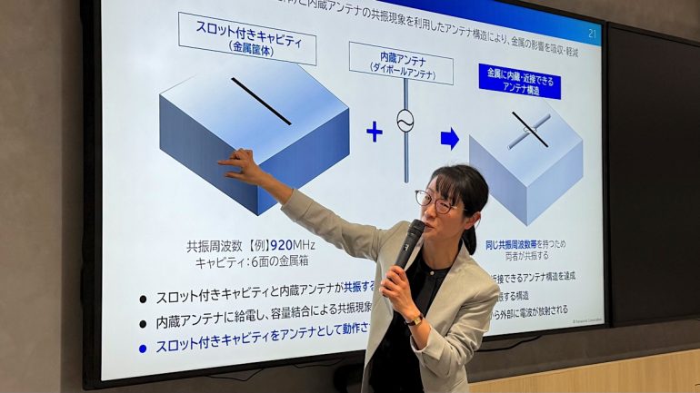 説明会に登壇した、パナソニック エレクトリックワークス社 ソリューション開発本部 システムソリューション開発センター エッジデバイス基盤開発部 無線システム開発課 竹田 真理さん