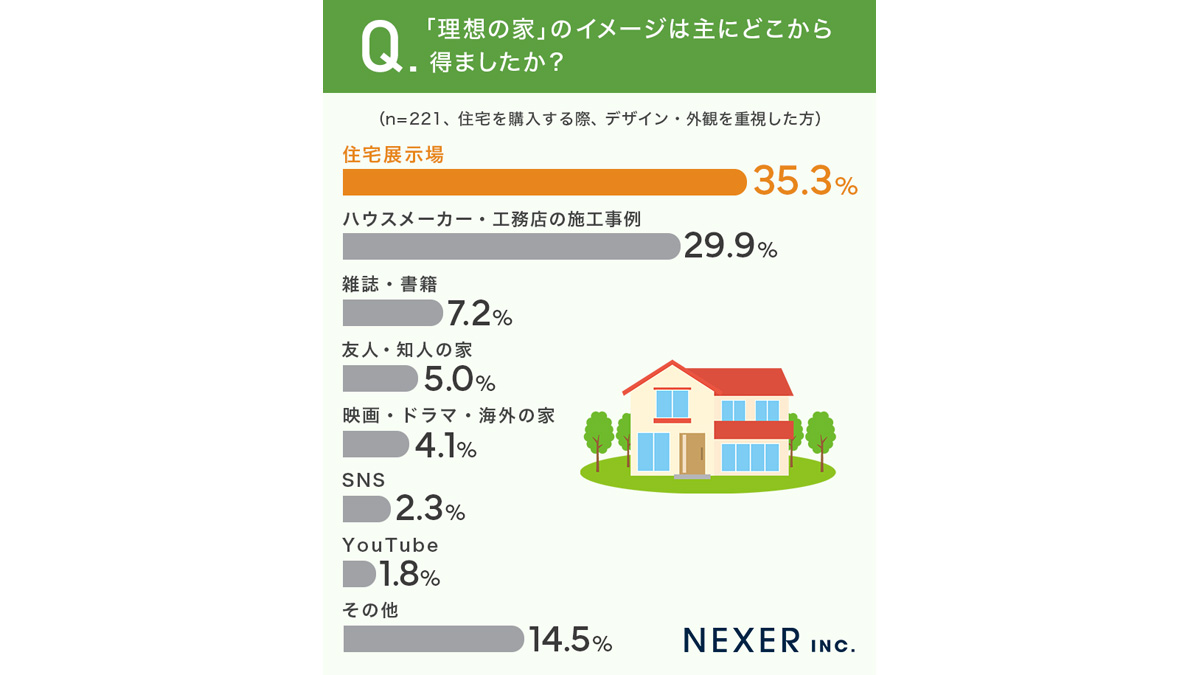 「理想の家」のイメージ、最も多い情報源は「住宅展示場」で35.3%