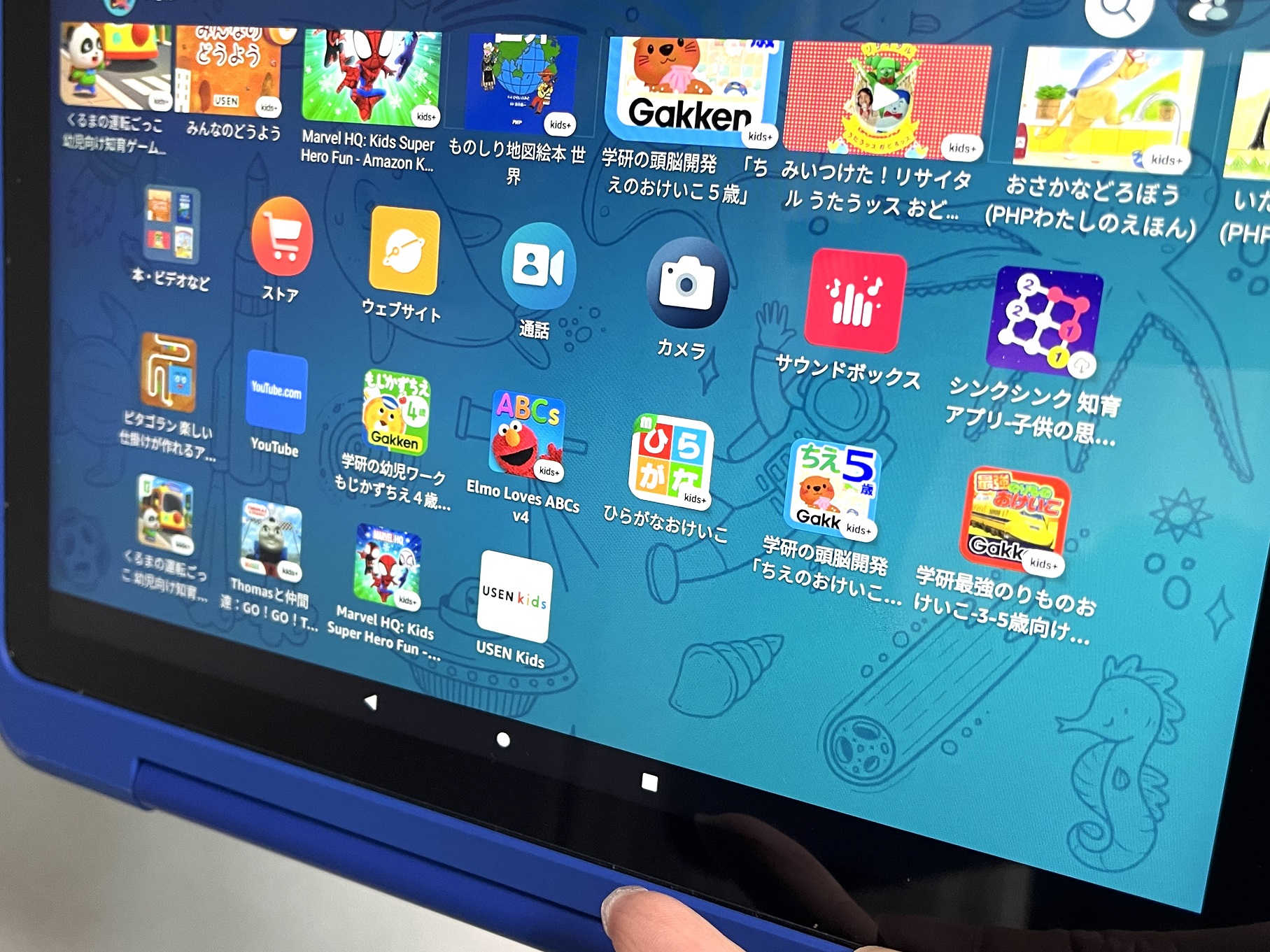 Amazon Kids+を通じて利用できるコンテンツは、アニメやバラエティだけでなく、学習要素を含むものも多い。動画視聴だけに偏らず、学習アプリや読書にも自然と触れられる点は心強い。特に10.1インチの大画面は、図鑑や学習系コンテンツとの相性が良いと感じた。