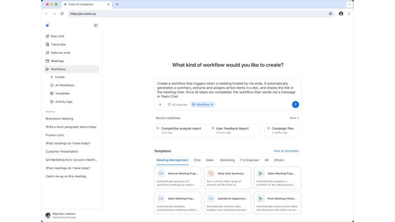 Zoom AI Companionは、単なるタスク支援にとどまらず、ユーザーのニーズを先回りして予測。複雑なワークフローを自動化することで、チームの働き方やコラボレーション、目標達成の方法を変革するために設計されている。