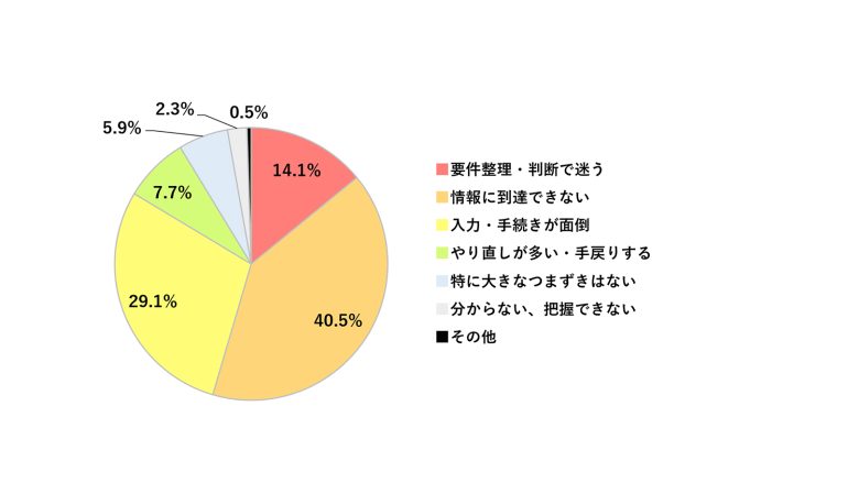 つまずきの原因トップ3は「情報到達」、「入力・手続き」、「要件整理と判断」