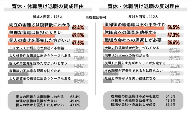 育休・休職明けの退職に賛成の理由は「両立の困難さは復職後にわかる」