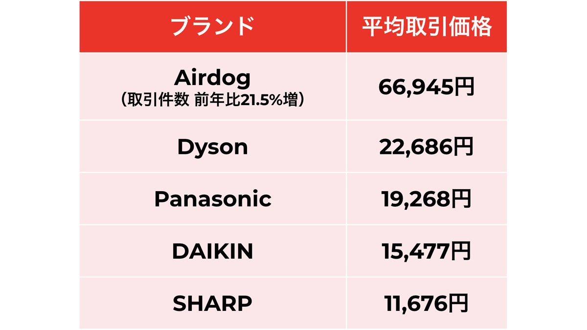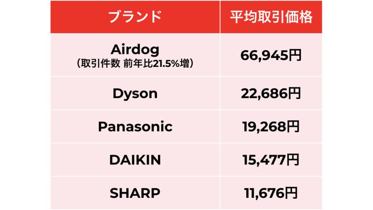 空気清浄機取引が最も多い3月、平均取引価額が6.6万円を超える「Airdog」が人気