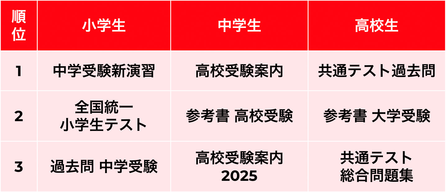 小中高別 参考書・過去問関連の検索ワードランキング(2025年1月 ~ 2025年4月)