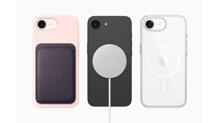 そんなiPhone 17eの背面には、MagSafe対応の充電器、スタンド、ケース、カード入れ、カメラアクセサリーなどを簡単に取り付けることもできる。