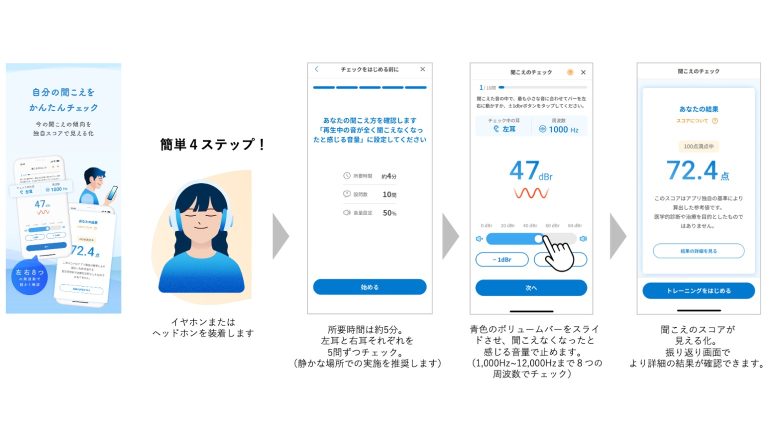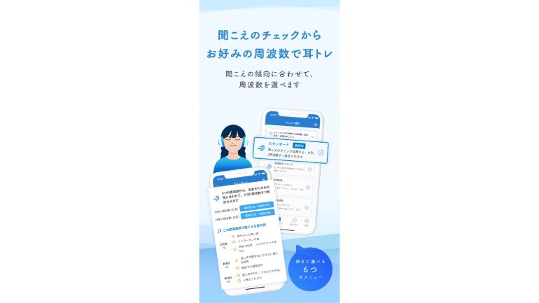 「聞こえのチェック」と「耳トレ」をアプリひとつで