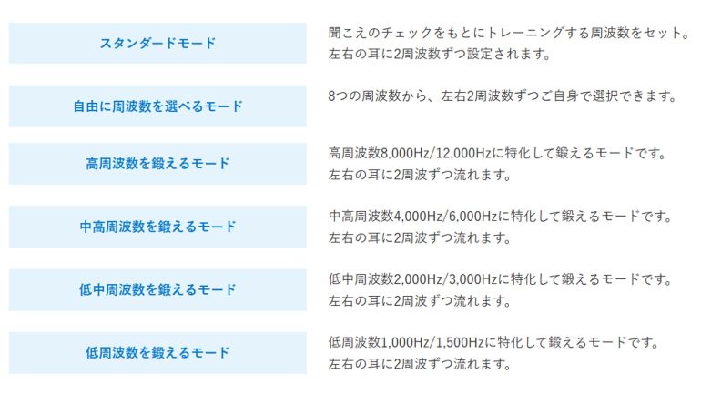 記録したチェック結果をもとに、自身に合う耳トレーニングの周波数を選択する。