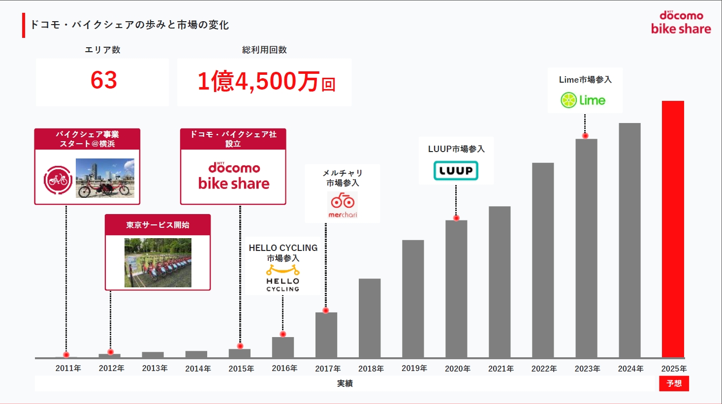 「ドコモ・バイクシェア」は、日本のシェアサイクルの先駆けとして2011年にサービスを開始し、15年以上の歴史がある。