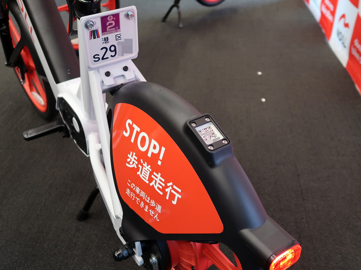 新車両に新たに特定小型原動機付自転車が導入されることにも注目したい。「NOLL」では時速6km以下なら歩道通行を可能にする特例モードは非搭載で運用。そのため後輪の泥よけボードに「STOP!歩道走行」という車両ステッカーを貼り、利用者にも歩行者にもそのことを周知する。