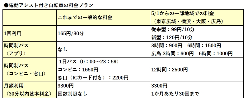 このような現状を踏まえて、新料金プランは10分単位に変更。10分間で従来型は99円、新型は120円にする。1日パスも利用開始時間から3時間、6時間といった料金形態に変更する。