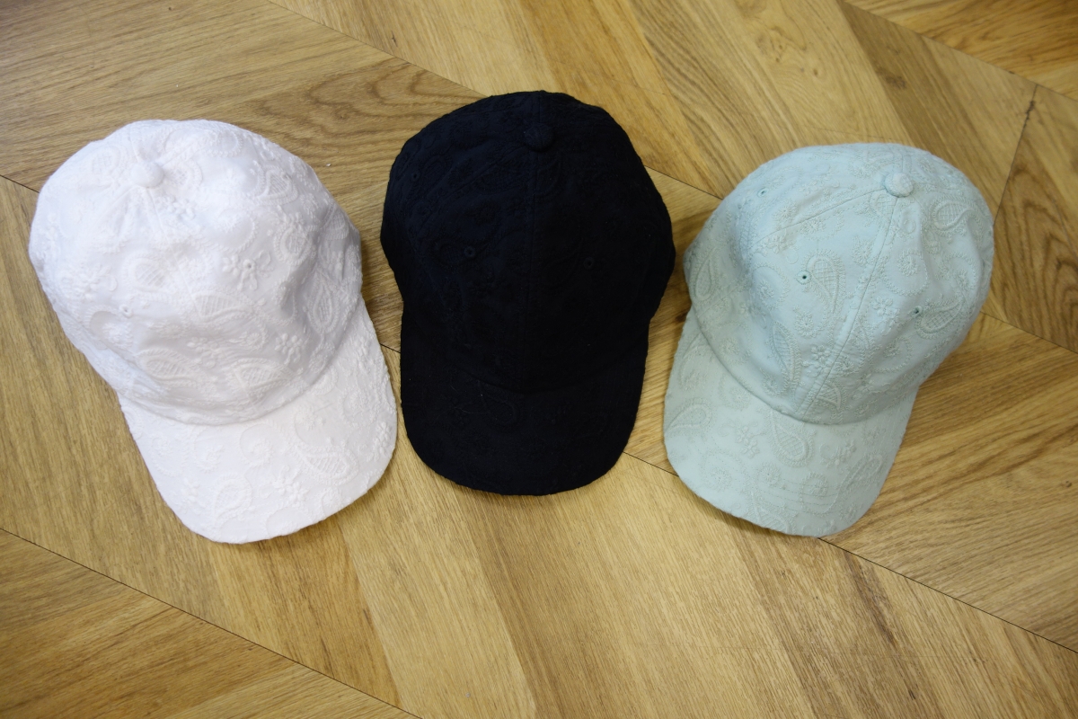 これからの季節のお散歩、”わんこと行くクルマ旅”には、紫外線、太陽の照射から頭を守るキャップも不可欠。Nanaeさんが選んだのは「UV CUT エンブロイダリーキャップ」。れからのシーズンにうれしいUV加工のキャップで、エレガントな刺繍が魅力。普段使いにもOKの質感の高さもチョイスした理由です。カラーはオフホワイト、ブラック、グリーンの3レ色。サイズはフリー。