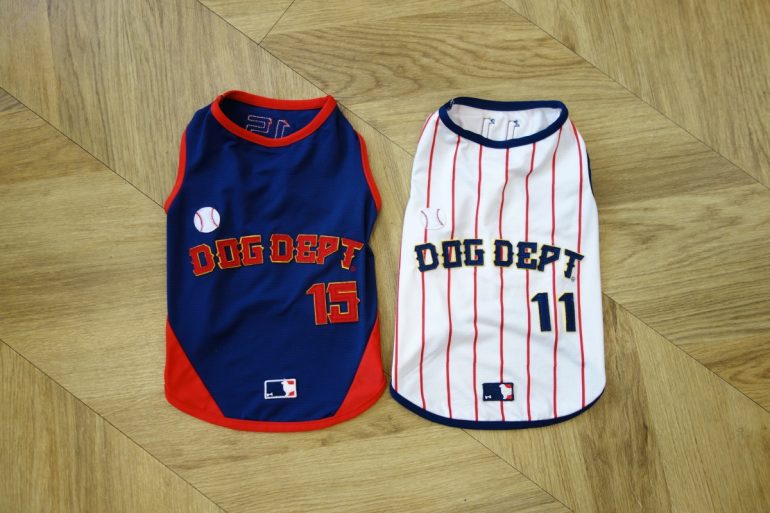 2026年3月は2026 WORLD BASEBALL CLASSICが開催されていますが、DOG DEPTではベースボールをテーマにしたドッグウエアを今期も展開。WBC日本代表のユニフォームを思わせる!?「ベースボールノースリーブ」は、オフホワイトとネイビーの2色。しかも、UV加工・防蚊加工・クール加工の機能付きで、夏の着用も快適そのもの。サイズはXSから4L、DS、DM、BLの11サイズが揃っています。WBC、野球ファンの飼い主さんはぜひ、ゲットしてくださいね。