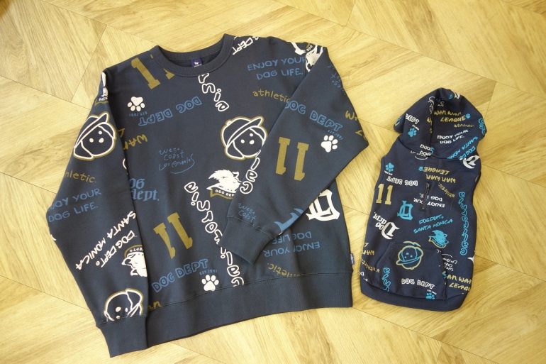 その「HELLO.MAX総柄ロゴクルー」シリーズには、愛犬とのリンクコーデが可能な「HELLO.MAX総柄ロゴボタンパーカー」の用意も。総柄デザインの犬服ノースリーブパーカーで、カラーはミックスグレーとネイビー。サイズは3Sから4L、DS、DM、BLの展開です。DOG DEPT新作の遊び心を愛犬とともにコーデし、ペアルックを楽しんでほしいですね。