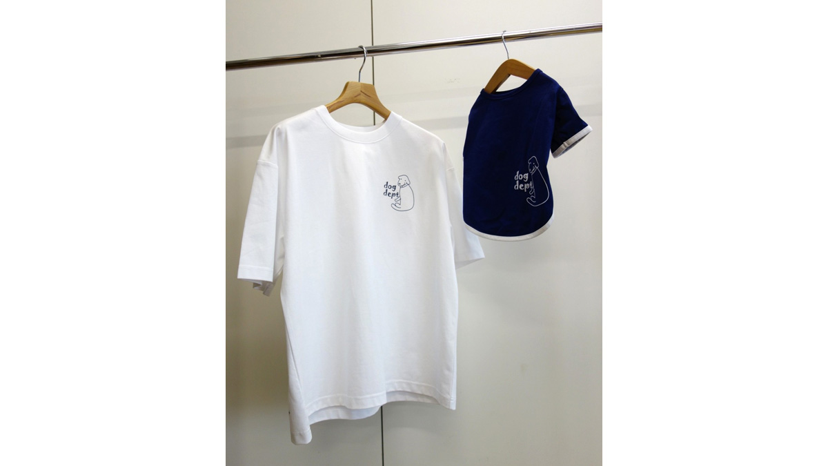 もちろん、愛犬とのリンクコーデ用としてドッグウエアの「エンボスTシャツ」もあり、こちらもインディゴとレンガの2色で、サイズはXSから4L、DS、DM、BLの11サイズが揃っています。