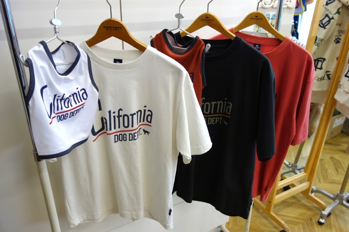 日本の夏はここ最近、暑さが深刻ですが、ユニセックスのヴィンテージ感ある「California ヴィンテージロゴTシャツ」と、愛犬が海や湖の中に入っても安心なドッグウエアの「濡らして着るショート丈 California ヴィンテージロゴ」があれば、暑さも和らぐというもの。何しろドッグウエアの「濡らして着るショート丈 California ヴィンテージロゴ」は水に濡らすだけでどこでも超冷感。暑い時期の愛犬のお散歩での熱中症対策にぴったりですよね(夏は涼しい時間帯にお散歩するのが鉄則です)。「California ヴィンテージロゴTシャツ」はオフホワイト、レッド、チャコールの3色でサイズはS、M、L。ドッグウエアの「濡らして着るショート丈 California ヴィンテージロゴ」はオフホワイトとレッドの2色で、サイズはXSから4L、DS、DM、BLの11サイズとなっています。