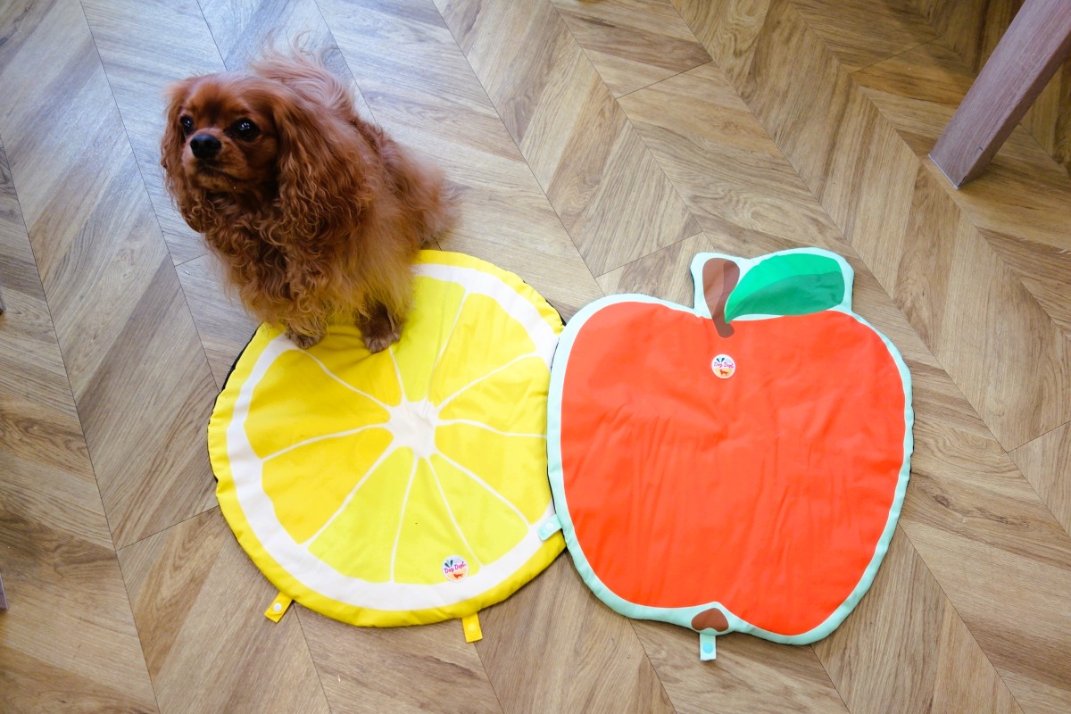 こちらも冷感生地を使用したフルーツ柄が新鮮な「フルーツカフェマット」。レモンとりんごの2デザインで、サイズは60cm×60cm。