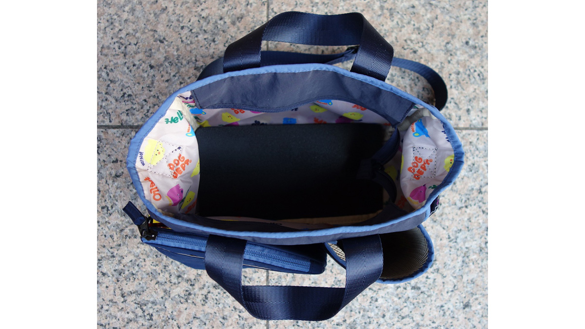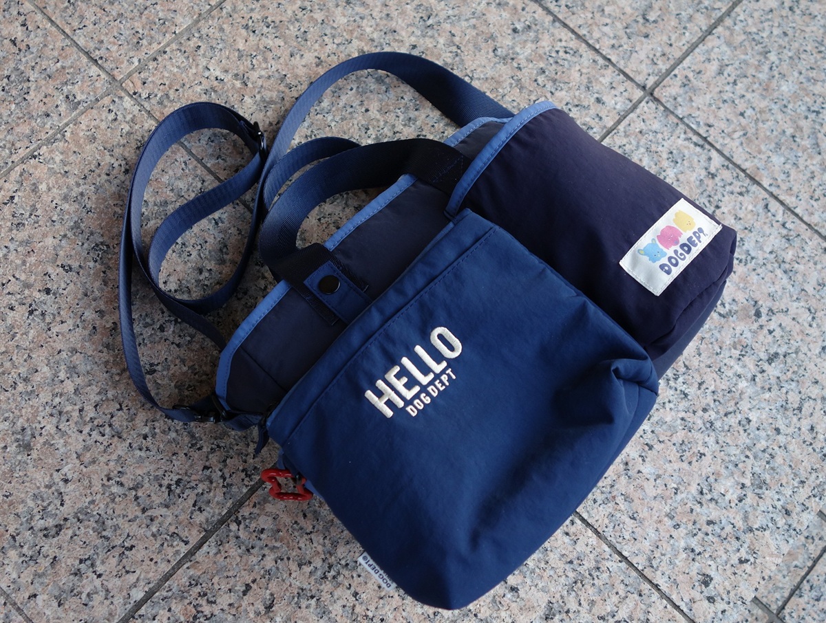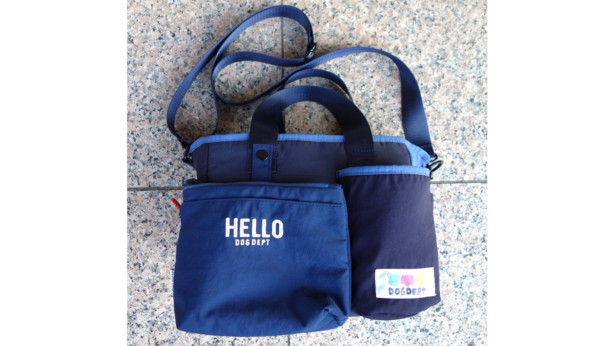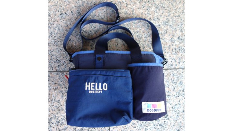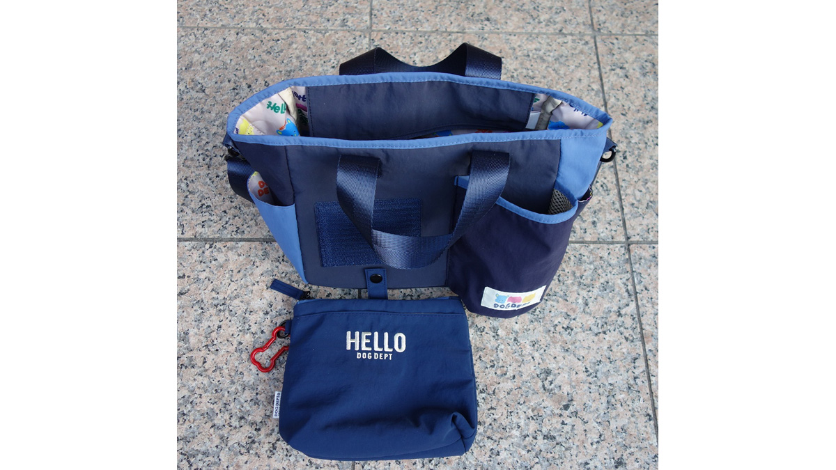 お散歩バッグも新作が数多く登場。ここでチョイスしたのは、人気のマナーポーチ付きお散歩バッグの「マルチカラー マナーポーチ付きお散歩バッグ」。取り外し可能なマナーポーチには消臭加工生地が使用され、本体はポケット多数のため、使いやすさ抜群。これからの季節、アーモンドのお散歩に大活躍してくれそうです。カラーは写真のネイビー、マルチカラー、カーキの3色。サイズは写真のMのほか、ゆったりサイズのLもあります。