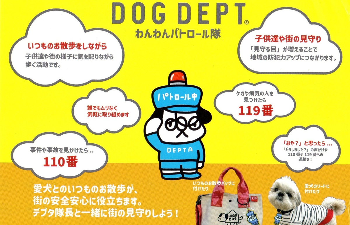 ところで、DOG DEPTでは「わんわんパトロール隊」の隊員を募集中。いつものお散歩をしながら、子供たちや街の様子に気を配りながら歩く活動で、「見守る目」が増えることで地域の防犯力をアップすることが狙いだそう。そのわんわんパトロール隊」の入隊は、店舗で「わんわんパトロール隊」の入隊を希望し、”デプタ隊長のパトロール中”のプレートを受けとるだけ(商品購入の有無を問わないそう)。創業35周年を迎えたDOG DEPTが行う、デプタ隊長ともに誰でも無理なく気軽に取り組める活動です。ぜひ、飼い主と愛犬で「わんわんパトロール隊」に入隊してはいかがでしょうか。もちろん、我が家のキャバリアのアーモンドも入隊しましたよ!!