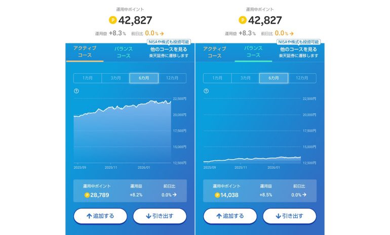 アクティブコース……2万8,789ポイント(運用益+8.2%)