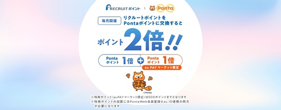 リクルートポイントは、Pontaポイントに交換すると2倍になる。