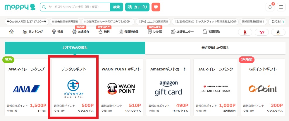 モッピーで500ポイントを交換するなら