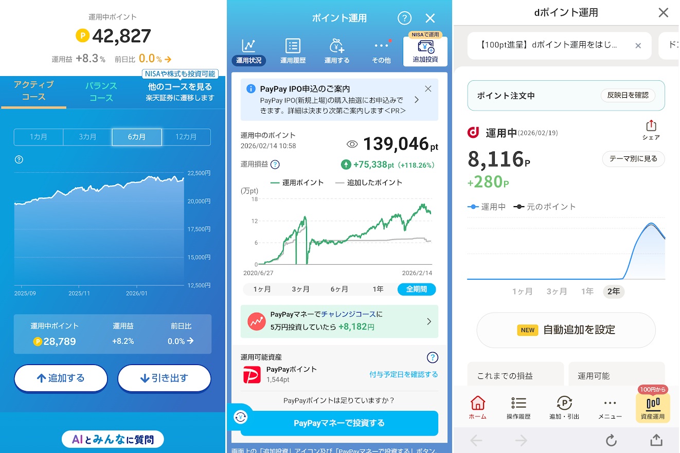 使うタイミングだけではない。「ポイント運用」を利用すれば、ポイントのまま増やすこともできる。