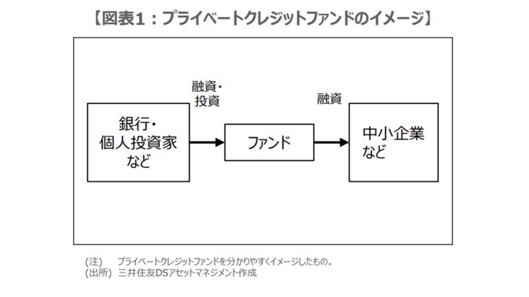 「プライベートクレジット」とは、銀行以外の貸し手によって提供される融資形態のことだ。ファンドが貸し手となる「プライベートクレジットファンド」では、ファンドが中小企業に直接融資を行なう(図表1)。