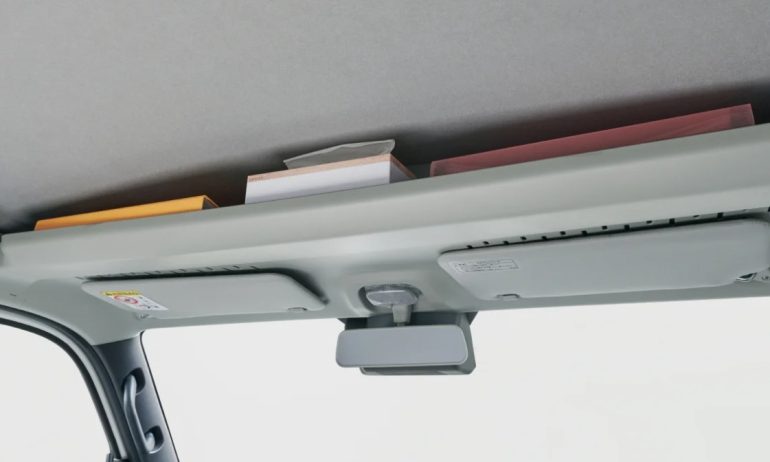 運転席周りの収納では、助手席前のトレイなどはもちろん、頭上にオーバーヘッドシェルフを備えているため、働くクルマとしての使い勝手は十二分。室内灯、荷室灯に白い光のLEDが奢られているため車内の明るさ、夜の車内の作業にも不満は出ないと言っていいだろう。