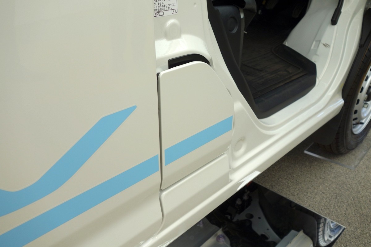※エンジンのないBEVにもかかわらず、ガソリン車にある車体右側のガソリン給油口がそのまま残されているのはボディを共通化したコストダウンによるものか(開きませんが)。