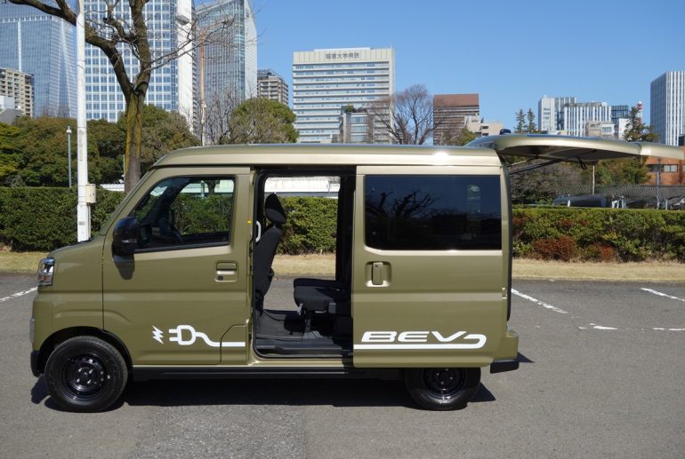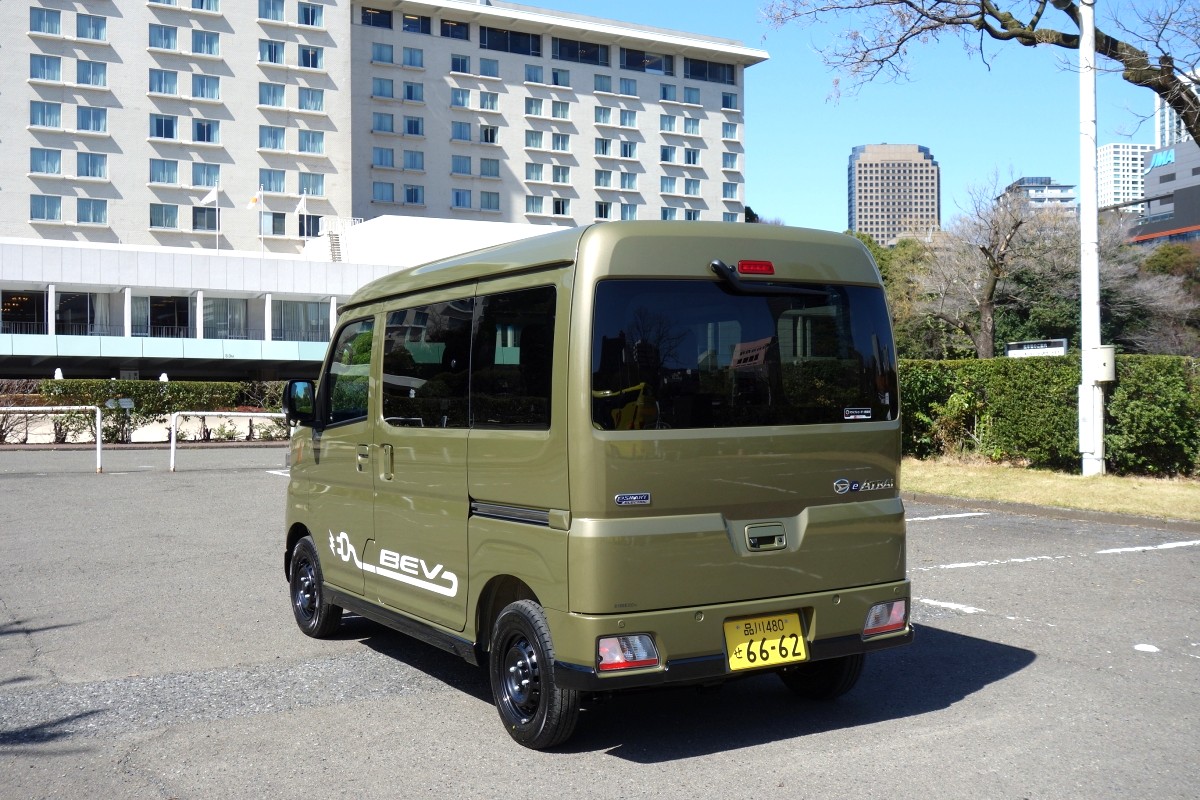 ところで、働くクルマとしての荷物の積載性についてだが、電動化による部品配置の見直しやボディ、サスペンションの新設計によって室内スペースを犠牲にすることなく大容量バッテリーを搭載することができ、働くクルマで重要な上屋、荷室の使い勝手は既存のガソリン車と変わらない、軽キャブオーバーバンNO.1の積載スペース(e-ハイゼットカーゴ4シーターの例)、使い勝手の良さ、魅力を受け継いでいるという。
