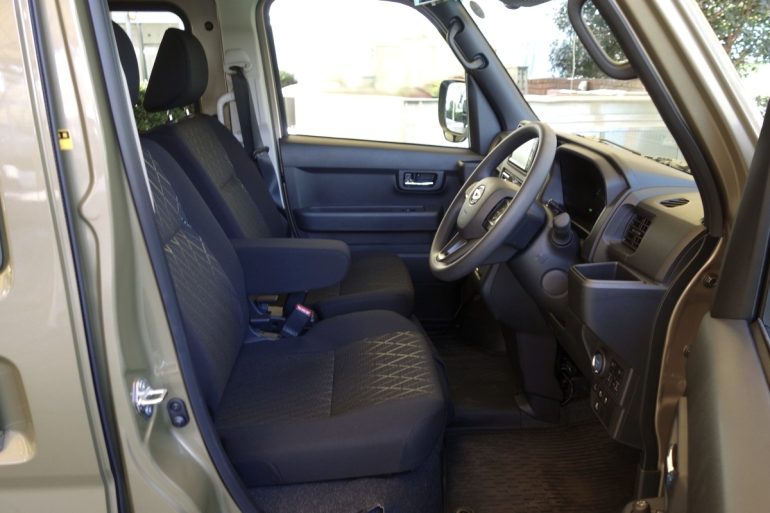 ところで、シフターを操作していて「あれっ、この部品、どこかで見たことがある・・・」。そう思ったのも当然で、なんとトヨタ・ノア&ヴォクシーのエレクトロシフトマチックのシフターなのである。ダイハツとトヨタの関係を思い出せば、そんなこともアリかも・・・だが、Mクラスボックス型ミニバンのシフトパーツを、ダイハツの軽商用車に流用するのは意外だ。