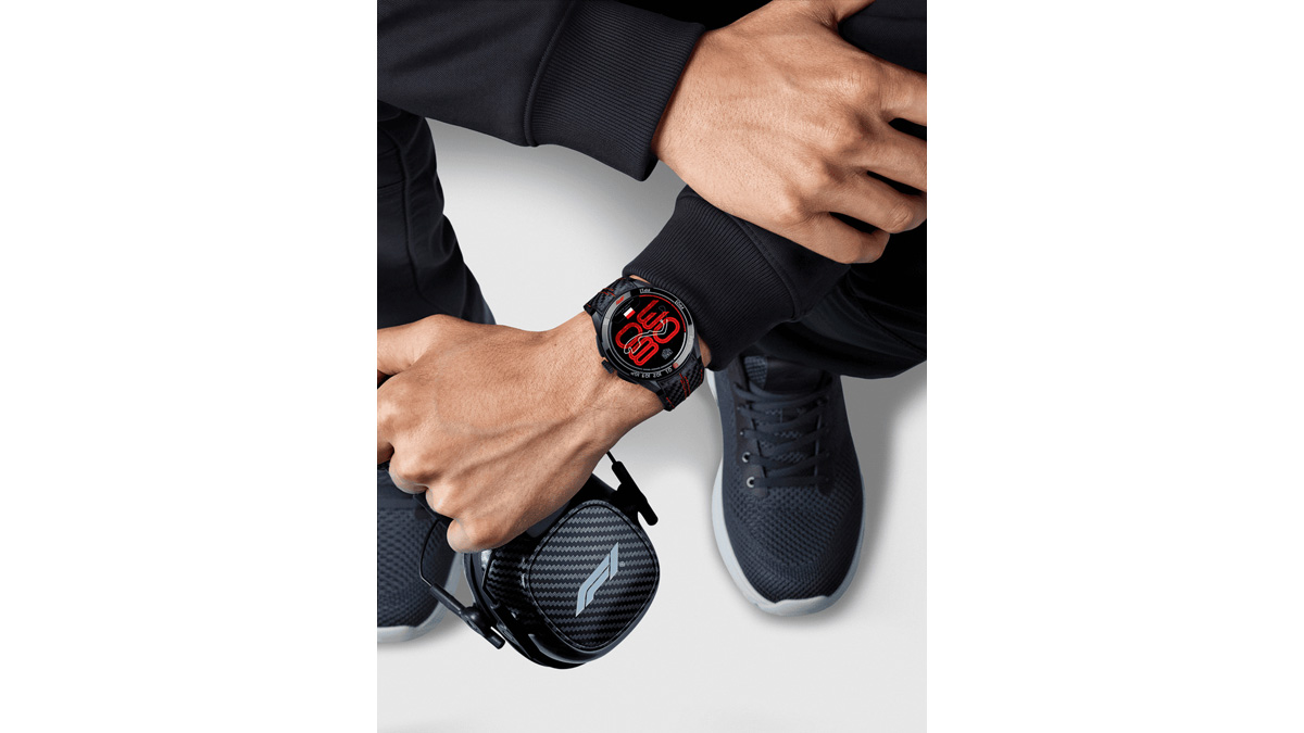 ケースバックには、心拍数センサーと赤のF1 ロゴを配し、このコラボレーションウォッチのハイオクタンなアイデンティティを鮮やかに際立たせた。
