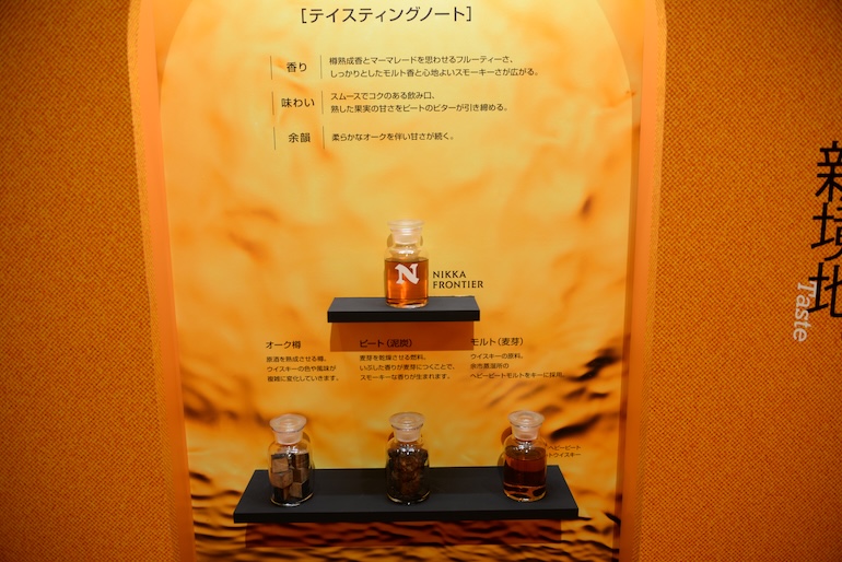 余市のモルトをキーモルトに採用した上で、グレーンウイスキーよりもモルトウイスキー使用比率を高くし、香味成分が豊富に残る冷却しないろ過の「ノンチルフィルタード」を行なった。ブレンデッドウイスキーの中でグレーンよりモルトを多くしたものは、最高ランクの『THE NIKKA』しかなく、「ノンチルフィルタード」も『竹鶴ピュアモルト』『シングルモルト余市』『シングルモルト宮城峡』の高額限定品にしか実施していない。『ニッカフロンティア』より高額のウイスキーにのみ採用されている仕様ばかりなので、坂本氏も「私たちがこれまでつくってきたウイスキーの通年販売商品の中で、これほどこだわりが詰まったものはありません」と言うほどだ。