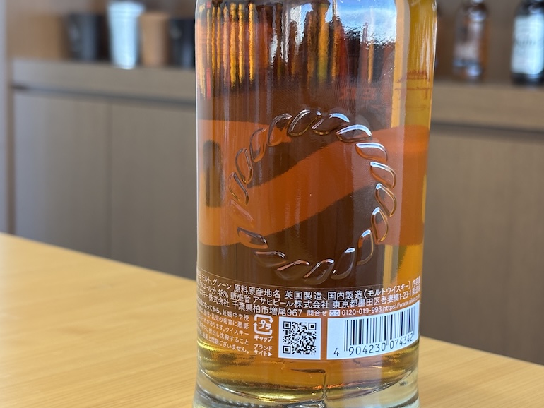 瓶の裏につけたしめ縄をモチーフにした模様もこだわったところ。これは竹鶴が広島の造り酒屋で生まれ育ったことに由来したもので、ウイスキーに魂を宿す意味から施した。