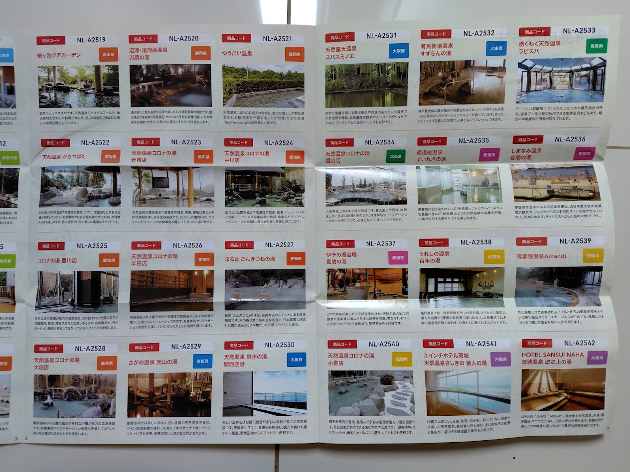 2025年3月度では、「SPA-HERBS(埼玉県)」や「有馬温泉 太閤の湯(兵庫県)」、「東京豊洲 万葉倶楽部(東京都)」、「天然温泉 かきつばた(愛知県)」など、全国合計42施設から選べた。1施設を選び申し込むと、電子チケットを受け取れる。施設によって1名利用チケット、2名利用チケットと違いがあった。