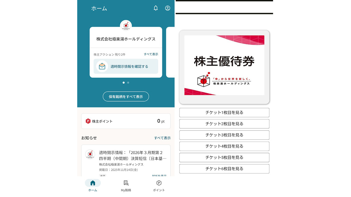 極楽湯ホールディングスの権利月は9月。1年以上の”修行”が必要で、100株だと、1年以上4枚、2年以上6枚の無料入浴券がもらえる。もし、300株以上なら、1年以上6枚、2年以上8枚がもらえ、保有株数に応じて増えていく。