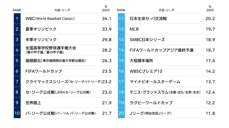 ■スポーツ大会への興味関心はWBCが最も高く、夏季&冬季オリンピックが続く