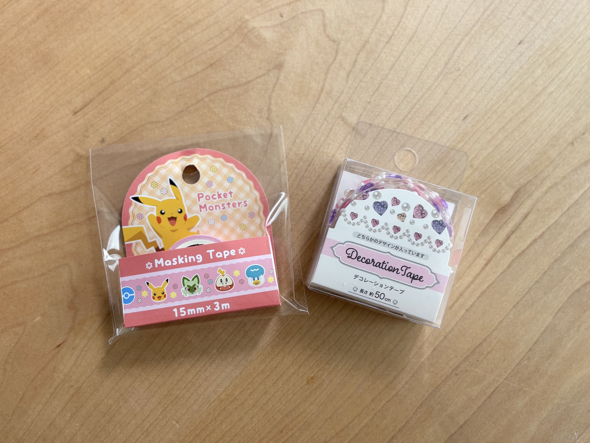 あとは、手帳をかわいくカスタムできそうな『ポケットモンスター』のマスキングテープと、きらきらとしたパーツが輝くデコレーションテープもゲット。