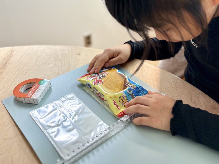 お菓子のパッケージを貼り付ける、バインダー型の「お菓子帳」から作ってみる。