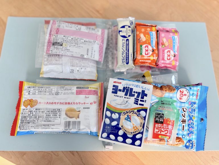 (4)いろいろなお菓子をコレクションするお菓子帳に向いていそうな「パッケージが薄めのお菓子」。