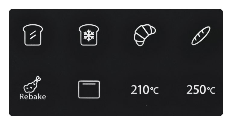 また、トースト(常温・冷凍)、クロワッサン、フランスパンの4つの自動メニューを搭載し、タッチパネルでメニューを選びスタートボタンを押すだけで、マイコン制御により温度・時間を自動調整し、最適な焼き上がりを実現。焼き加減は5段階から選べるため、好みに合わせた仕上がりに調節することができる。