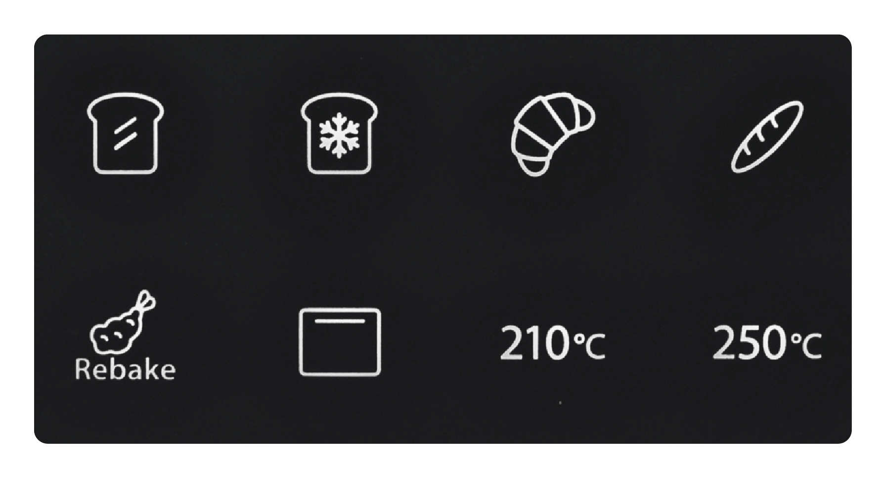 惣菜パン用と揚げ物用のリベイクメニューも搭載し、それぞれの食材に適したあたためでできたてのおいしさに仕上げる。加えて、上下ヒーター加熱によるオーブン機能では、「210℃」もしくは「250℃」の温度で最大30分まで設定可能。本格的なオーブン料理にも幅広く対応する。