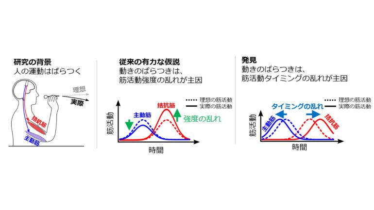 こうしたばらつきが生じる仕組みの解明は、脳の運動制御研究における重要なテーマとされ、従来は“筋活動強度の乱れ”がその主因と考えられてきた。